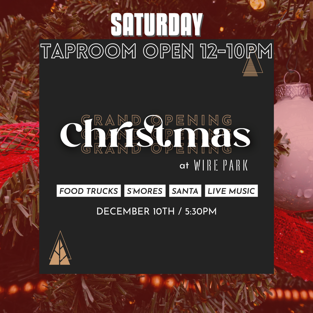 The taproom will be open from 12-10pm, and starting at 5:30pm we will be celebrating the holidays with Christmas at Wire Park! Come join us for Wire Park's Grand Opening celebration, and enjoy tons of family fun like hot chocolate, food trucks, live music, Santa, s'mores, coffee, and some of the new retail shops that Wire Park will have to offer.